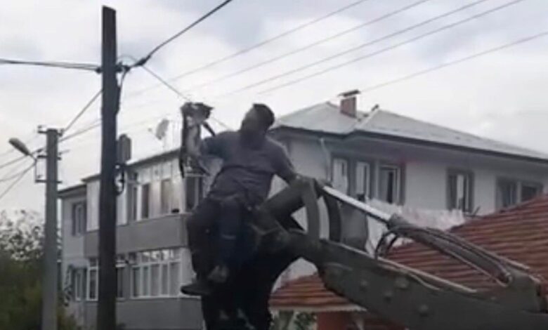 Ekipler, kepçeyi direğe yaklaştırdı ancak kedinin aşağı inmemesi üzerine bir personel kepçenin kovasına binerek direğe ulaştı. Personel, kediyi bulunduğu yerden alarak güvenli bir şekilde sokağa indirdi.