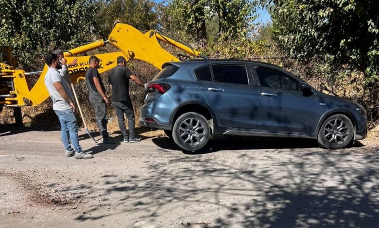 Kurtalan’da çukura düşen araç kepçe yardımıyla çıkartıldı