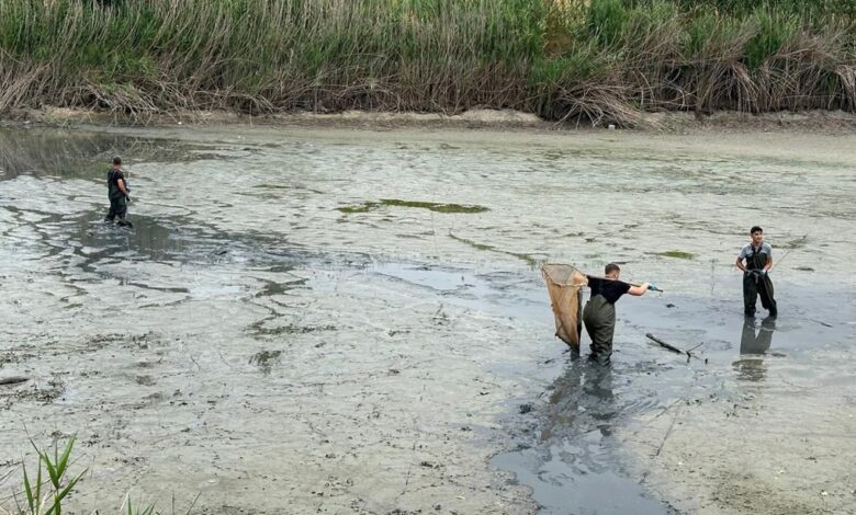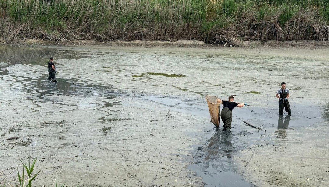 Kuruyan gölette mahsur kalan balıklar kurtarıldı