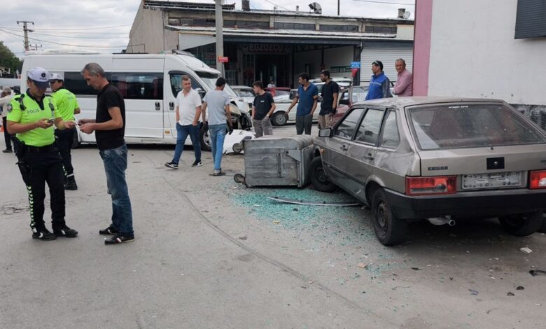 Çarpışmanın etkisiyle savrulan öğrenci servisi, çöp konteyneri ile park halindeki bir otomobile çarparak durabildi.