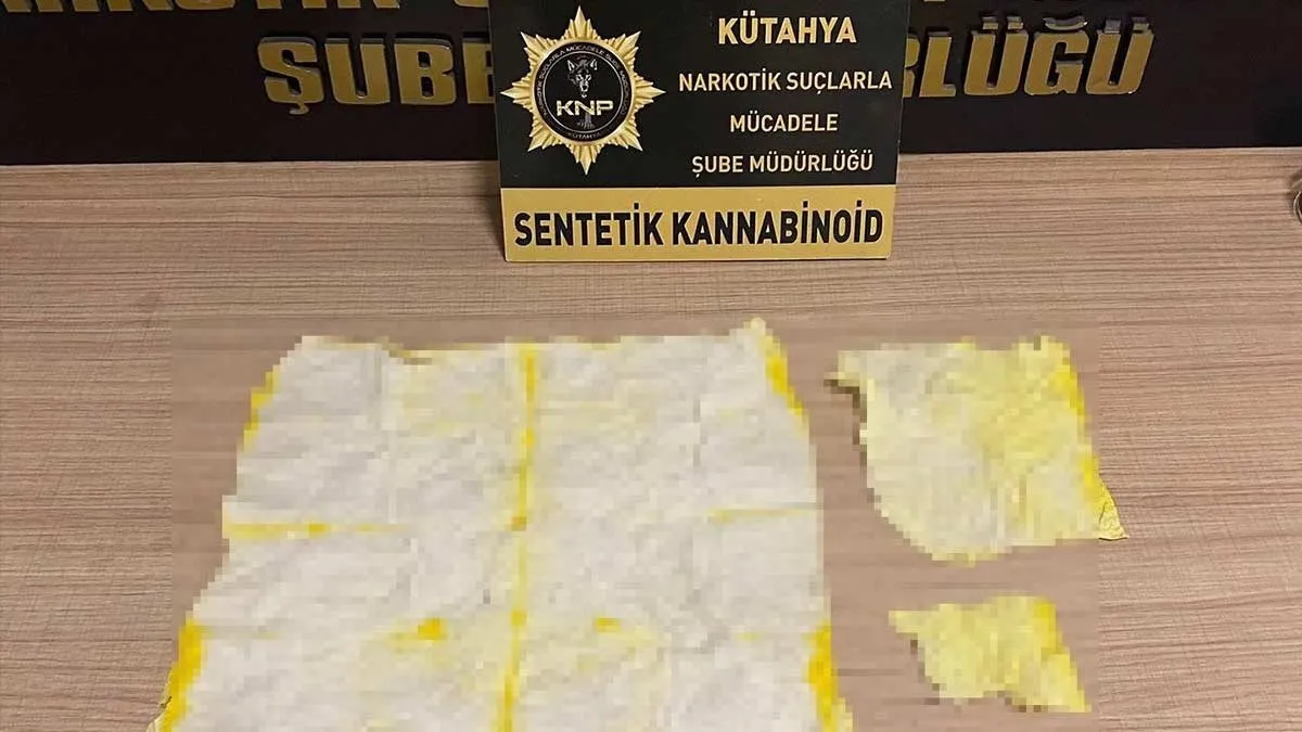 Kütahya İl Emniyet Müdürlüğü Narkotik Suçlarla Mücadele Şube Müdürlüğü ekiplerince, uyuşturucu ile mücadele kapsamında yapılan takip sonucu durdurulan araçta bulunan şahsın üst aramasında, 3 parça halinde yaklaşık 7.952 içimlik kâğıda emdirilmiş sentetik kannabinoid (bonzai) maddesi ele geçirildi.