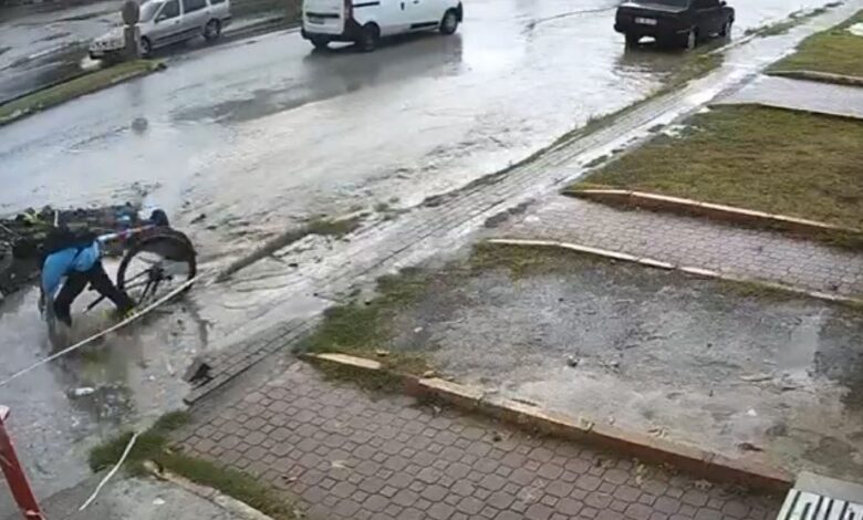 Lise öğrencisi, bisikletiyle iki metrelik çukura düştü