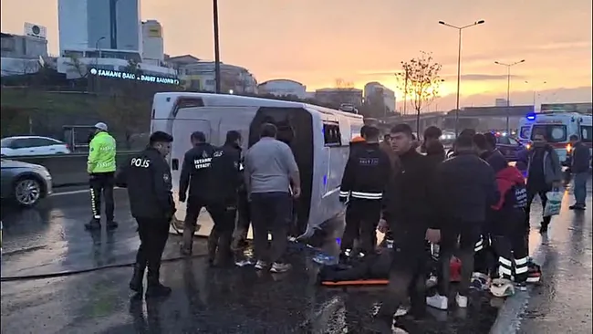 Maltepe’de servis minibüsü devrildi! Yaralılar var
