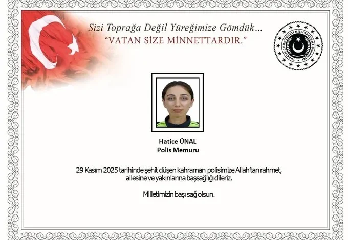 Şehit Polis Memuru Hatice Ünal’ın naaşının, düzenlenecek törenin ardından memleketi Çankırı’nın Yapraklı ilçesine bağlı Kavak Mahallesi Mezarlığı’nda toprağa verileceği öğrenildi.