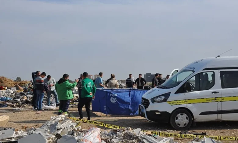 Mersin’in Tarsus ilçesinde hafriyat döküm alanında, çekyat içerisinde, halıya iple sarılı bıçaklanmış halde erkek cesedi bulundu.
