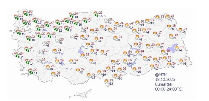 18 Ekim Cumartesi hava tahmin raporu18 Ekim Cumartesi hava tahmin raporu