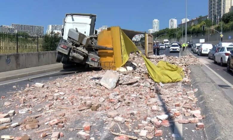 Moloz yüklü kamyon devrildi: Maltepe yönü trafiğe kapatıldı