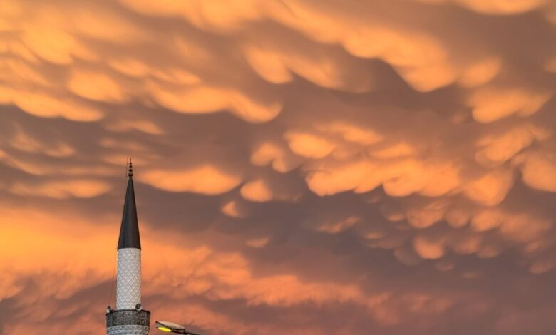 Kesecik benzeri desenler oluşturan ve gökyüzünü kaplayan Mammatus bulutlarını görenler, o anları cep telefonlarıyla kaydetti.