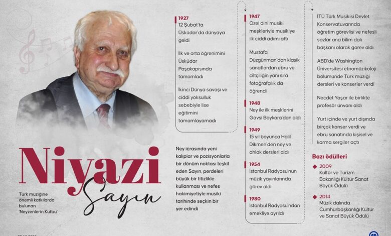 Devlet sanatçısı, neyzen, ebru sanatçısı ve fotoğrafçı Niyazi Sayın, dün 98 yaşında İstanbul’da vefat etti.
