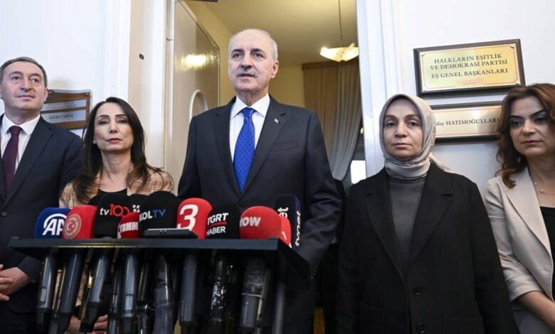 Bugün ilk görüşmesini DEM Parti’ye yapan Kurtulmuş’a AK Parti Grup Başkanı Abdullah Güler, AK Parti Grup Başkanvekili Leyla Şahin Usta eşlik etti.