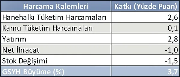 Büyüme verisine sektörel bazda bakıldığında ciddi ayrışmalar göze çarpıyor. Tarım sektörü yüzde 12.7 oranında daraldı. Tarım, son 20 yılın en zayıf performanslarından birini sergiliyor. İnşaat sektörü ise bu çeyrekte de çift haneli rakamlarda (yüzde 13,9) büyüdü. Büyümenin 0.7 puanı inşaat sektöründen geldi. Hizmetler, önceki çeyreklere kıyasla daha yavaş ilerledi. Ancak yine de büyümenin ana motoru olmayı sürdürdü. Sanayi sektörü bu yıla daralma ile başlamıştı. İkinci çeyrekle birlikte toparlanma emareleri belirdi. Bu çeyrekte sanayi yüzde 6.5 büyüdü ve genel büyüme rakamına 1.1 puan katkı sağladı.