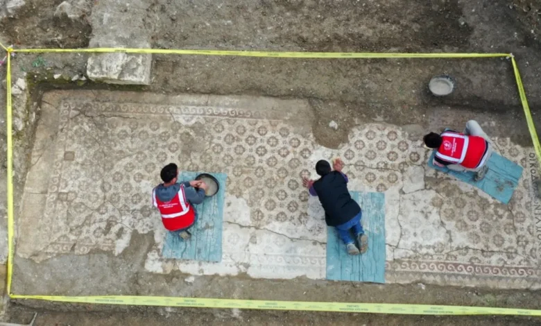 Görenleri hayrete düşüren görüntüler Hatay’da kayda geçti. Depremde yıkılan bir binanın enkazının kaldırıldığı alanda yapılan temel kazısı sırasında, Geç Antik Çağ’a ait Grekçe yazıtlı taban mozaiği gün yüzüne çıkarıldı. Beklenmedik keşif, bölgenin tarihi geçmişine ışık tutarken uzmanları da alarma geçirdi.