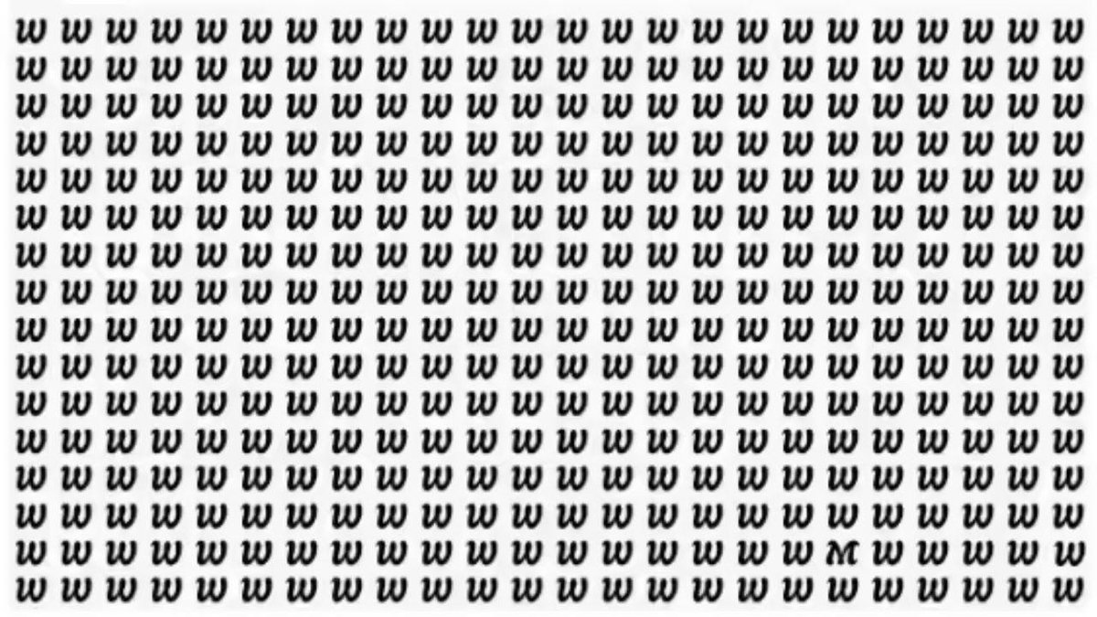 Yüzlerce W’nin arasına saklanan tek bir M! Sadece en dikkatli gözlere sahip kişiler farklı harfi 7 saniyede yakalayabiliyor. Peki siz kısa sürede M harfini bulabilir misiniz? Göz koordinasyon gücünüze güveniyorsanız, süreyi başlatın, görsele odaklanın.