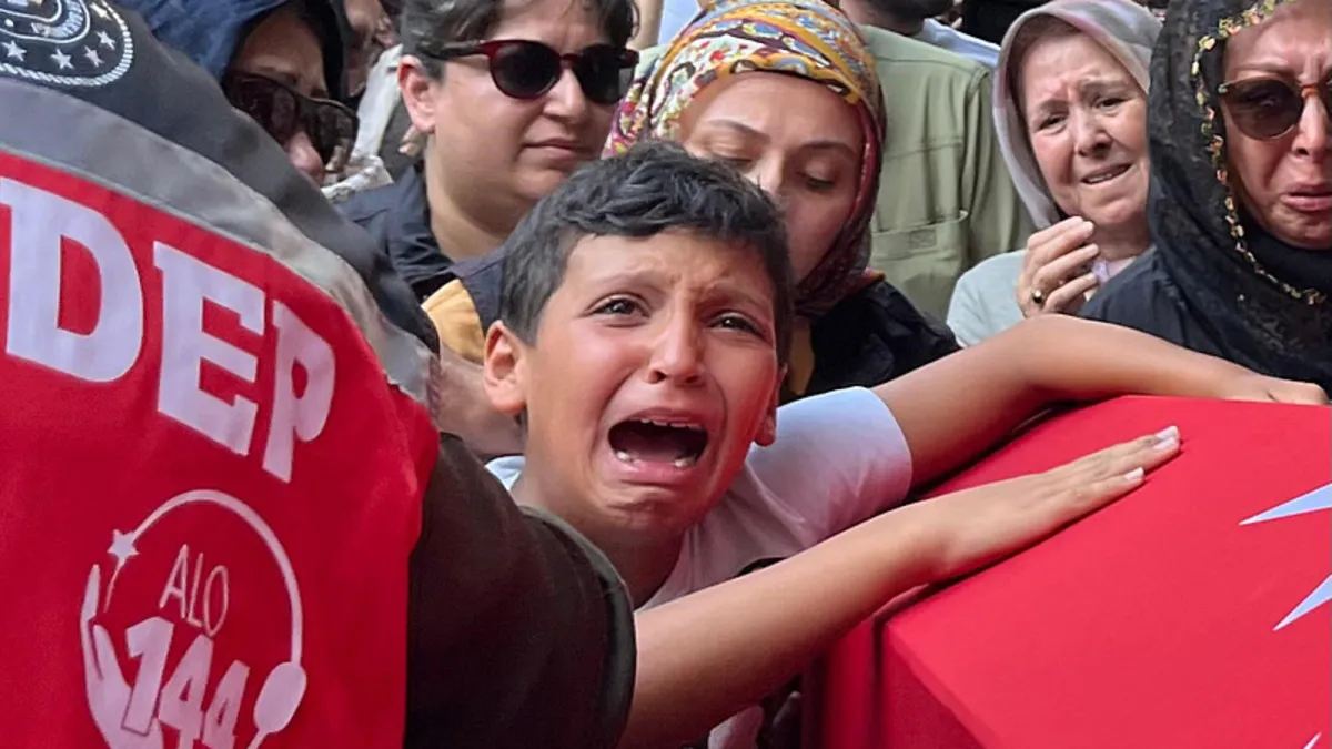 Türkiye, Eskişehir’deki yangın faciasında hayatını kaybeden 10 şehidine ağlıyor. Yangında şehit olan kahramanların arasında yer alan Eyüp Dereli’nin cenaze töreninde sevenlerinin ve oğlunun feryadı yürekleri dağladı. Babasının tabutuna sıkı sarılan acılı evlat, “Baba, ben sensiz ne yapacağım” ifadeleri yürek burktu. Öte yandan yangın şehidi Tolunay Kocaman da gözyaşları içinde son yolculuğuna uğurlandı. Şehidin 1 hafta önce evlendiği eşi Burcu Kocaman, ayakta durmakta güçlük çekti. İşte kahreden o anlar…