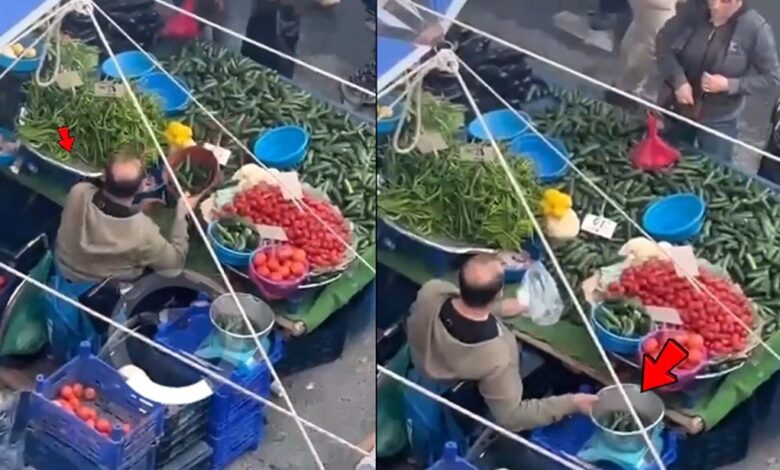 Olay, İstanbul‘un Bahçelievler ilçesindeki bir semt pazarında meydana geldi. Sosyal medyada yayılan görüntülere göre Pazarcı, müşterinin özenle seçtiği salatalıkları el çabukluğuyla kenara çekip daha önce hazırladığı farklı ürünleri tarttığı anları çevredekiler cep telefonuyla kaydetti.