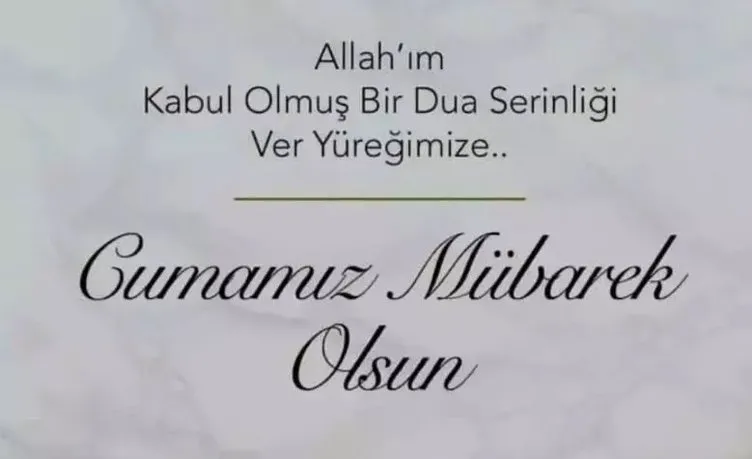 “Gönlümüzden geçen her güzel duanın kabul olduğu, kalbimize huzur ve nur dolduğu bir Cuma olsun. Dualarda buluşmak ümidiyle, Cumanız mübarek olsun.”