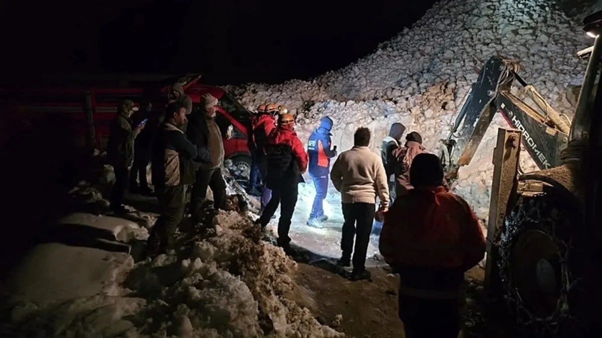 Yolda seyir halinde bulunan ve içinde hayvanların da yer aldığı bir kamyonete çığ çarpması sonucu uçurumun kıyısında askıda kaldı.