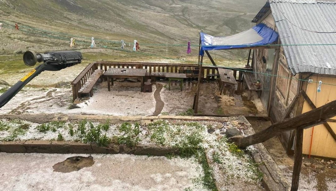 Yaylalarının beyaza büründüğünü gören yaylacılar dolu yağışından olumsuz etkilenmemek için bir süre evlerinden çıkamadı.