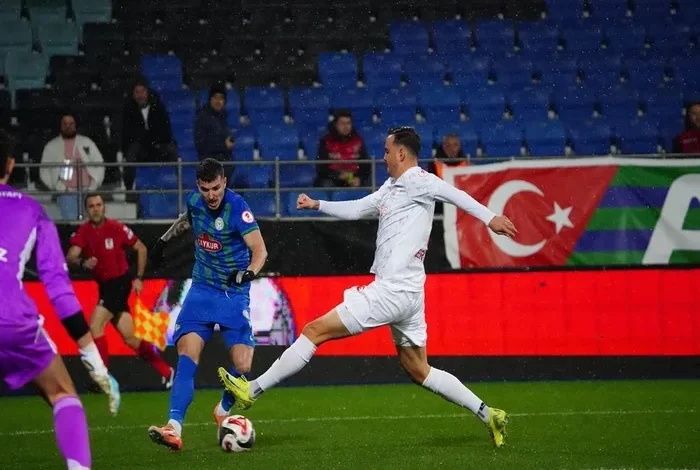 15’inci dakikada Çaykur Rizespor öne geçti. Sağ kanattan Mithat’ın havadan gönderdiği topa ceza sahası içerisinde yükselen Samet, meşin yuvarlağı kafa vuruşuyla ağlara gönderdi: 1-0.