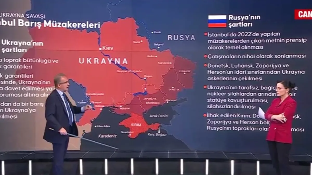 Dünyanın gözünün İstanbul‘a çevrildiği Rusya-Ukrayna barış müzakerelerinde iki ülkenin heyetlerinin bugün görüşmesi beklenirken taraflardan gelen peş peşe sert açıklamaların ardından görüşme yarına (16 Mayıs 2025) ertelendi. Ukrayna Devlet Başkanı Zelenskiy, heyetinin yarın İstanbul’a geleceğini ifade etmesinin ardından Rus heyeti akşam saatlerinde Dışişleri Bakanı Hakan Fidan ile görüşme gerçekleştirdi. Rusya-Ukrayna cephesinde barış sürecinin arabulucusu Türkiye, tarafları masaya oturtmak için çaba sarf ederken yarın müzakerede neler konuşulacak? Rusya ve Ukrayna’nın şartları neler? Rusya-Ukrayna savaşı İstanbul’da sona erer mi? Arka Plan programına katılan uzman isimler tarafların İstanbul’da masaya gelecek şartları değerlendirdi.