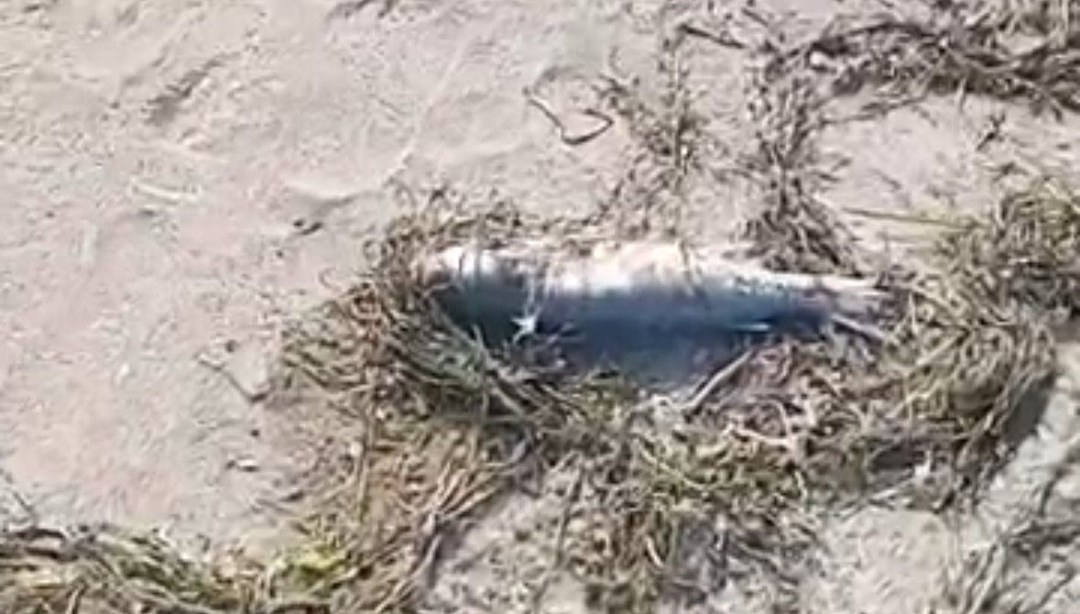 Görüntülerde, kumsalda çok sayıda ölü balığın yer aldığı görülüyor.