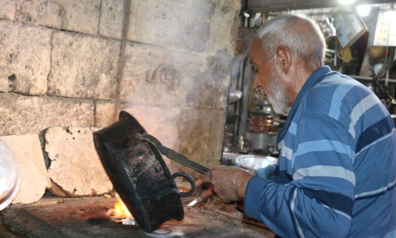 Şanlıurfa’da 75 yıldır tarihi bakırcılar çarşısındaki 20 metrekarelik dükkanında kalaycılık yapan 86 yaşındaki Mustafa Ozan, gelişen teknolojiye rağmen mesleğini sürdürüyor.
