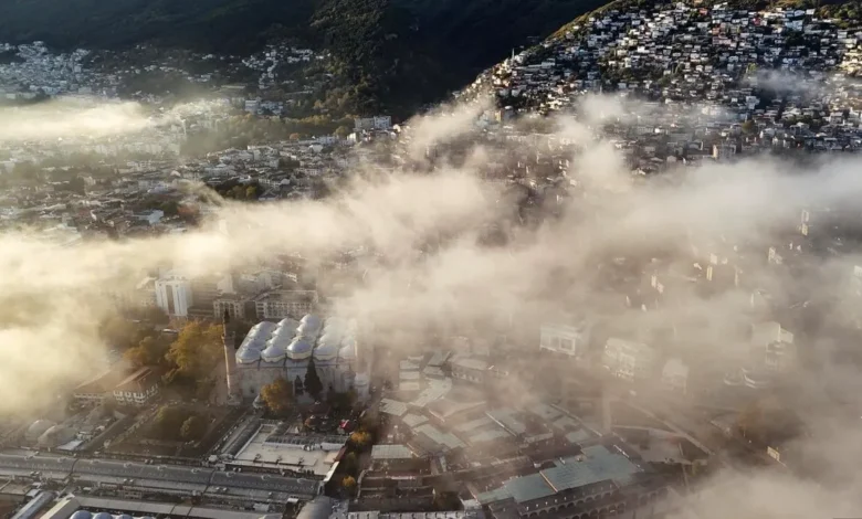 Bursa’nın bulutlar arasındaki manzarası nefes kesti. İşte kartpostallık görüntüler…