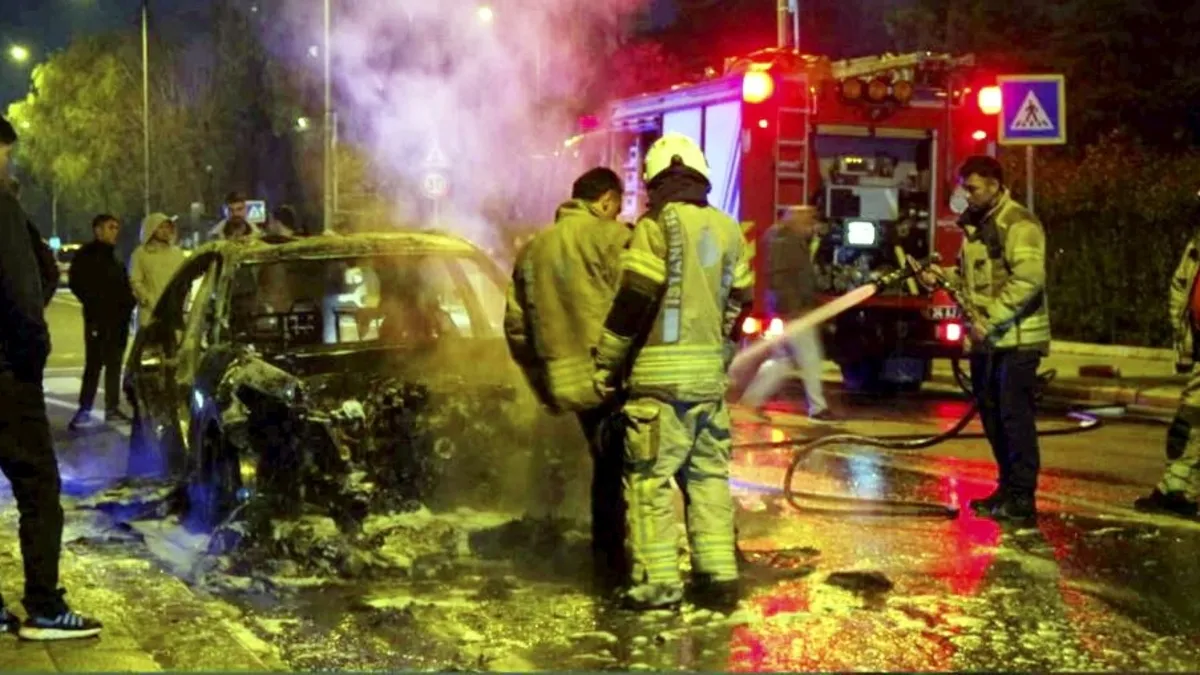 O sırada araç sürücüsü ve yolcu durumu fark ederek araçtan indi. Yangın büyürken otomobil alev topuna döndü. İhbar üzerine olay yerine itfaiye ve polis ekipleri sevk edildi.