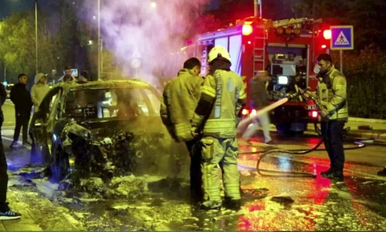 O sırada araç sürücüsü ve yolcu durumu fark ederek araçtan indi. Yangın büyürken otomobil alev topuna döndü. İhbar üzerine olay yerine itfaiye ve polis ekipleri sevk edildi.