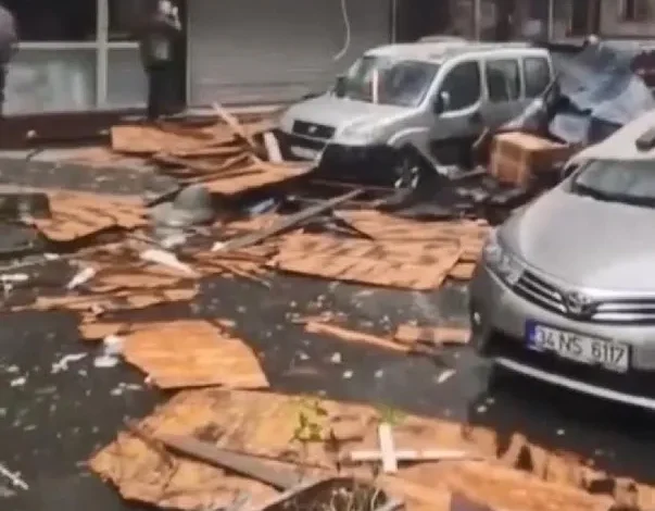 Şişli’de etkili olan fırtına binanın çatısını uçurdu!