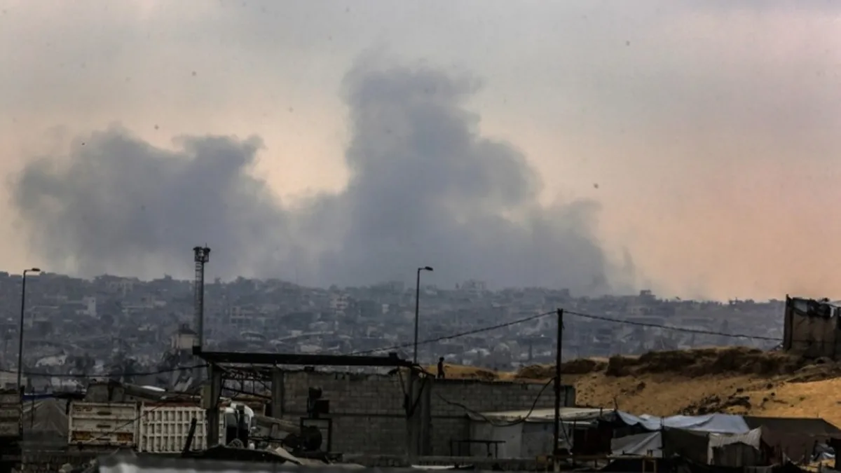 Gazze kentinin doğusundaki Şucaiyye Mahallesi’ne düzenlenen hava saldırısının ardından vurulan bölgelerden yoğun dumanlar yükseldi.