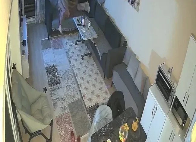 Depreme, Osmangazi ilçesi Altıparmak Mahallesi’ndeki 6 katlı binanın 5’inci katındaki evinde uyurken yakalanan Umut Erel, panikle kanepeden fırlarken, diğer odada bulunan annesi Müyesser Sevinç de (46) koşarak oğlunun yanına geldi. Anne-oğul birbirlerine sarılarak sarsıntının geçmesini beklerken, o anlar evdeki güvenlik kamerasına yansıdı.