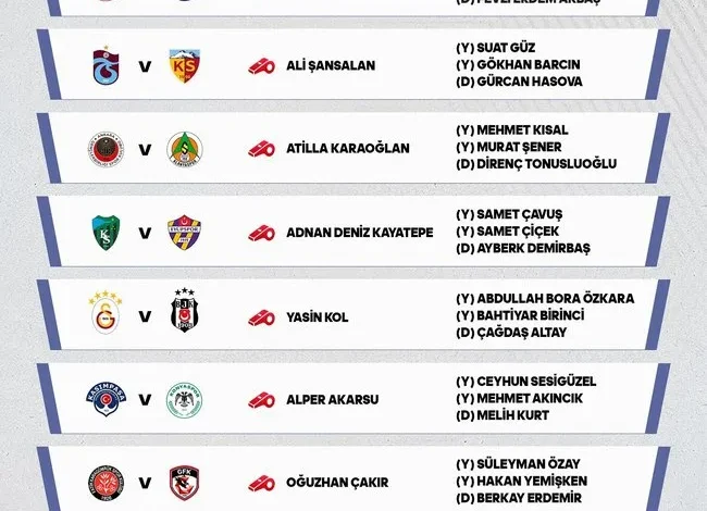 Trendyol Süper Lig’in 8. haftasında Galatasaray ile Beşiktaş karşı karşıya gelecek. Türkiye Futbol Federasyonu derbinin hakemini açıklandı.