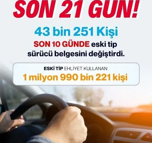 Halen 1 milyon 990 bin 221 vatandaşımız eski tip sürücü belgesi kullanıyor.
