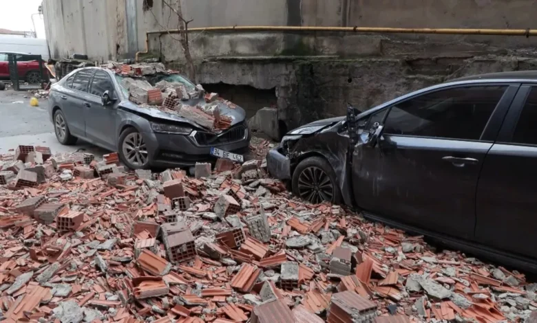 Olay, saat 14.00 sıralarında Eyüpsultan, Topçular, FerhatPaşa Caddesi’nde meydana geldi. İddiaya göre, yıkım aşamasında ve bağlantı noktaları kesilen binada boşta kalan tuğla duvar, fırtınanın etkisiyle yerinden koparak aşağıya düştü. Duvar parçaları park halindeki araçların üzerine düşerken, olayda can kaybı ya da yaralanma yaşanmadı. İhbar üzerine polis ekipleri bölgeye geldi. Görgü tanıklarından Adem Kurtuluş, “Bağlantıların kesildiğini gördüm. ‘Dikkat edin çünkü ben her gün bu yolu kullanıyorum’ diye uyardım. En sonunda da korkulan başa geldi. Bağlantılar kesildiğinden duvar da boşa çıktı” diye konuştu.