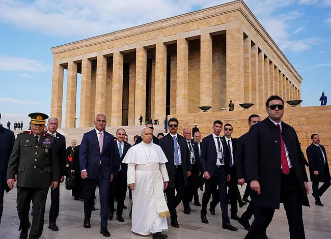 Vatikan Devlet Başkanı Papa 14. Leo, ilk yurt dışı ziyaretini Türkiye’ye gerçekleştirdi. Papa 14. Leo, başkent Ankara’da, Anıtkabir’i ziyaretinde, Atatürk’ün mozolesine çelenk sundu. Ardından, Misak-ı Milli Kulesi’ne geçen Papa 14. Leo, Anıtkabir özel defterini imzaladı. Papa 14. Leo’ya, Kültür ve Turizm Bakanı Mehmet Nuri Ersoy eşlik etti.