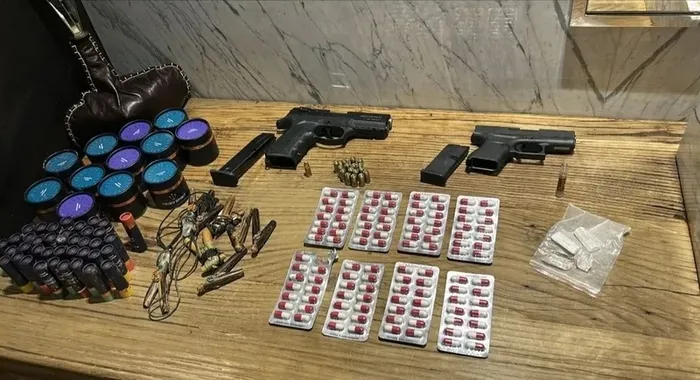 Ele geçirilen silah ve uyuşturucular (Sosyal medya)