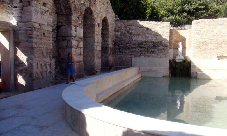 Antik kentin Batı Caddesi girişinden yer alan Roma hamamı yapılan kazı çalışmaları sonrası aslına sadık kalınarak ayağa kaldırıldı.