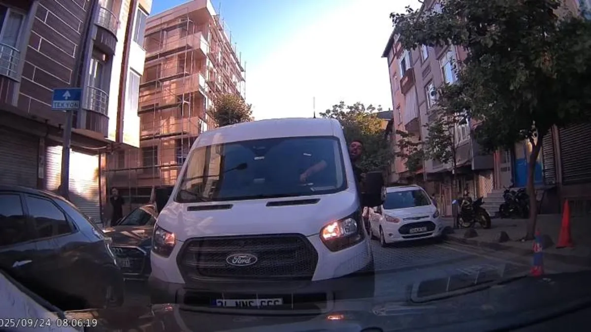 Akılalmaz olay, dün saat 08.10 sıralarında 50. Yıl mahallesinde meydana geldi. Tek yön tabelasının bulunduğu sokakta ilerleyen otomobil sürücüsü, ters yönden geldiği belirtilen minibüs şoförüyle tartıştı. Otomobil sürücüsü ters yönden gelen minibüs şoförüne yol vermemekte ısrar ederek, polis ekiplerine haber vereceğini söyledi. Minibüs şoförü ise ‘Polis çağır sıkıntı yok’ diyerek sürücüye cevap verdi. İki sürücü arasındaki tartışma uzun süre devam etti.