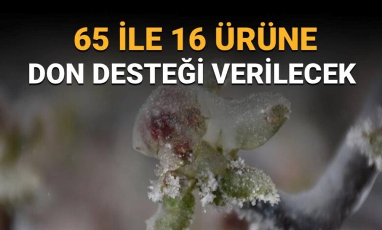 Tarımorman.gov.tr adresinden yapılan açıklamada; “Kararla bu yılın şubat, mart ve nisan aylarında meydana gelen zirai don olayından etkilenen 65 ilde, 16 ürün için destekleme ödemesi yapılacak.