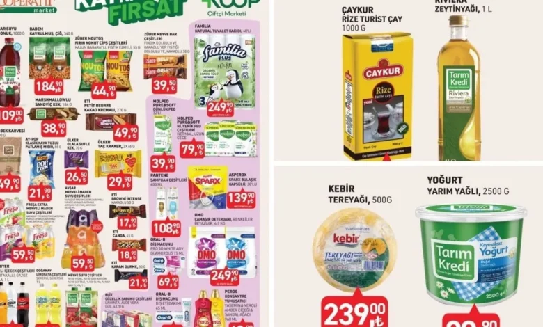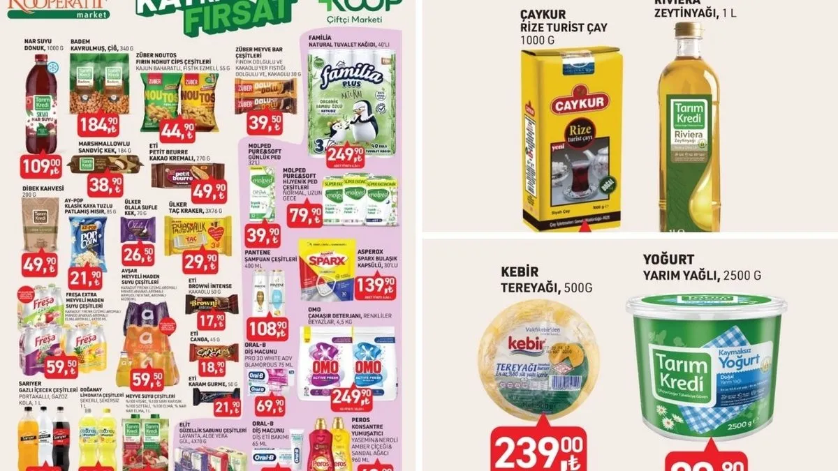 Tarım Kredi Kooperatif Market’in yeni Kat Kat Fırsat kataloğu indirimleri başladı. 21-27 Ekim 2025 tarihleri arasında geçerli olacak kampanyada toplam 57 üründe dikkat çeken fiyat avantajları sunuluyor. Beyaz peynirden çaya, somondan tavuk ürünlerine, tuvalet kağıdından atıştırmalıklara kadar birçok temel ihtiyaç ürünü raflarda indirimli olarak yerini aldı. İşte bu haftanın Tarım Kredi Market aktüel kataloğunda öne çıkan fırsatlar ve güncel indirimli ürün fiyatları…