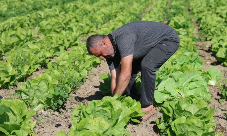Antakya ilçesi Bohşin Mahallesi’nde yaşayan çiftçi İsmail Erdoğan, ektiği 2 dönümlük araziye ektiği marulların olgunlaşmasıyla hasada başladı.