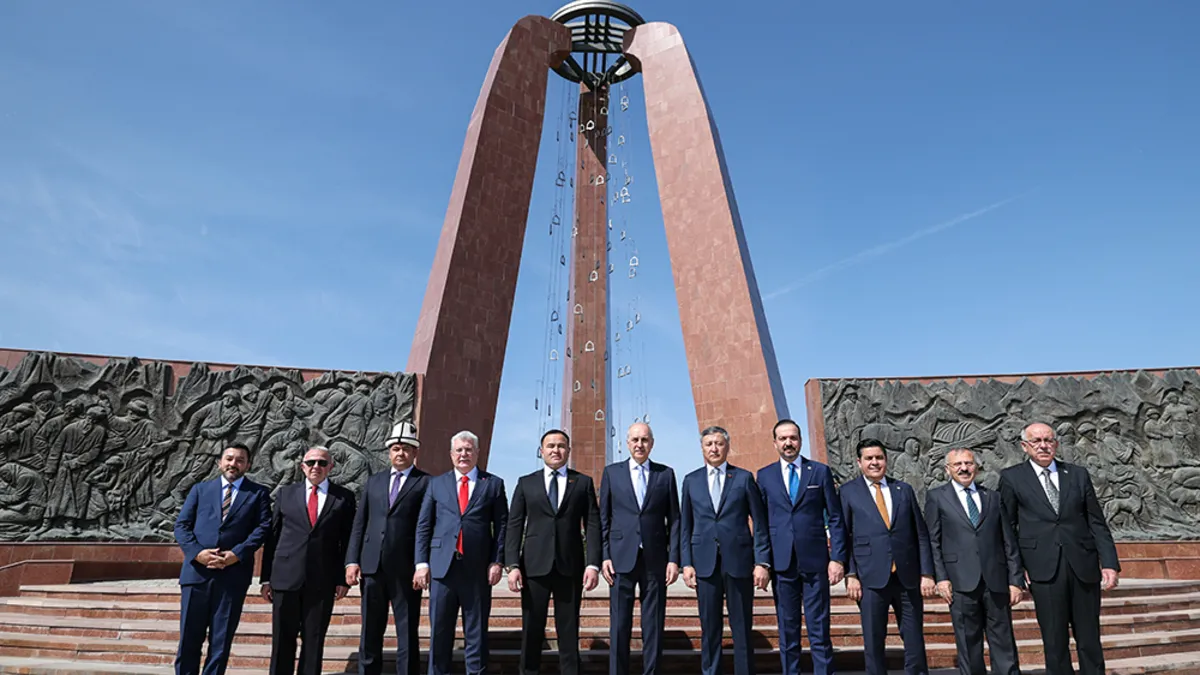Kurtulmuş, Kırgızistan’ın başkenti Bişkek’teki temasları kapsamında, Tanrı Dağı eteklerindeki Ata-Beyit Ulusal Tarih ve Anıt Kompleksi’ni ziyaretinde, Kırgızların 1916’da Rus Çarlığı’na karşı isyanını simgeleyen ve “Büyük Kaçış” anlamına gelen “Ürkün” anıtına çelenk bıraktı.