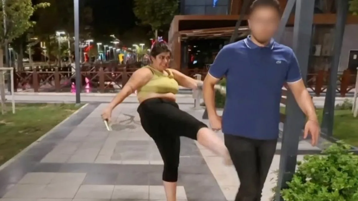 Çığlık seslerini duyan kimi vatandaşlar 112 Acil Çağrı Merkezini arayarak ihbarda bulunurken, kimisi de kadının çığlığına kayıtsız kalmayarak yanına koştu. Yardım için kadının yanına giden bir genç neye uğradığını şaşırdı. Yardım etmek için gelen genci itip kakan ve diğer yardıma gelenlere de tehditler savuran kadın, genci tekme atarak darbetti.