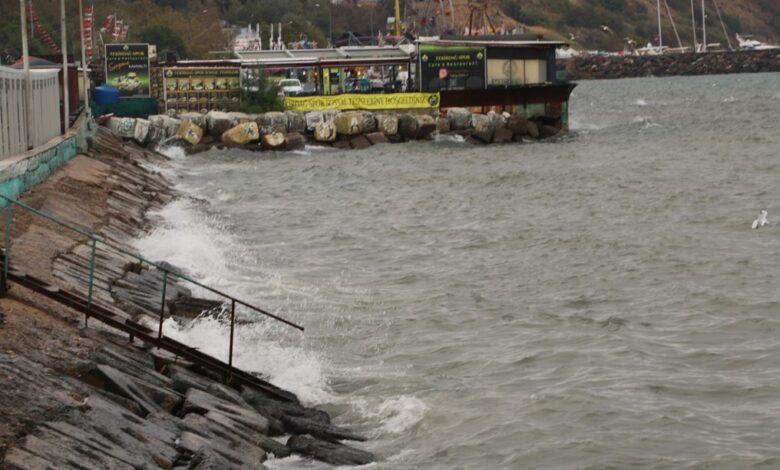 Poyrazla oluşan dalgalar, kıyıya yosun ve çeşitli atıklar sürükledi.