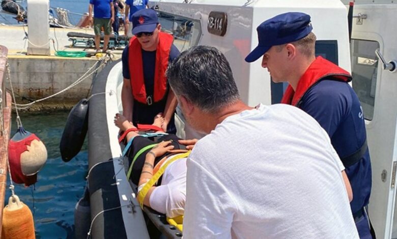 Yapılan yardım çağrısı üzerine Sahil Güvenlik ekipleri tarafından denizden tahliyesi yapılan çocuk 112 ambulans ekiplerine teslim edildi.