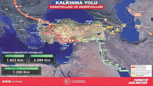 1.200 kilometrelik demiryolu ve karayolu ile Basra Körfezi’ni Türkiye’ye bağlayacak olan Kalkınma Yolu Projesi, lojistik üs olma hedefi doğrultusunda kritik önem taşıyor. Türkiye, Irak, Birleşik Arap Emirlikleri ve Katar’ın iş birliği ile hayata geçirilecek proje ile Uzak Doğu’dan gelen yükler Türkiye üzerinden Avrupa’ya geçebilecek. Projenin 2030-2031 gibi bitirilmesi hedefleniyor. Zengezur Koridoru ise Azerbaycan’ı Nahçıvan bölgesine ve devamında Türkiye’ye bağlamayı hedefliyor. Projenin Türkiye kısmı niteliğinde olan Kars-Iğdır-Aralık-Dilucu demiryolunun temeli 22 Ağustos’ta atıldı. 224 kilometre uzunluğunda olan hat 15 milyon ton yük taşıma kapasitesine sahip olacak. Hattın 2029 sonunda tamamlanması amaçlanıyor. Mayıs 2024’te bakım çalışmaları tamamlandıktan sonra yeniden hizmete açılan Bakü-Tiflis-Kars Demiryolu’nun (BTK) ise Zengezur Koridoru ile birlikte Orta Koridor’daki demir ve kara yolu yük taşıma kapasitesini artırması planlanıyor.