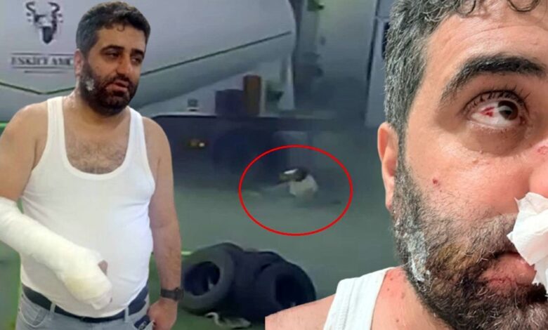 Aracın yakınında eğilim tamir çalışmasını izleyen Barış Aktaş lastiğin patlamasıyla savruldu.