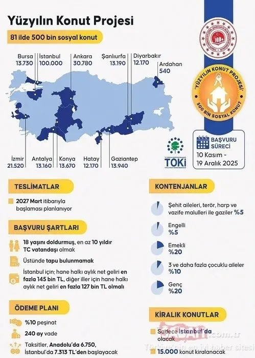 TOKİ 500 BİN KONUT PROJESİ BAŞVURULARI 2025: TOKİ 500 bin konut başvurusu ne zaman, şartları neler, ödeme planı nasıl olacak?