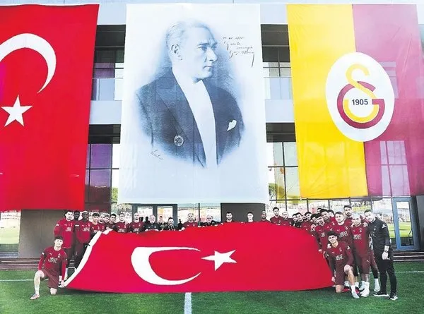 Galatasaraylı futbolcular ve teknik heyet dünkü idmanda açtıkları Türk bayrağı ile toplu fotoğraf verip 29 Ekim Cumhuriyet Bayramı’nı kutladı ve Ulu Önder Mustafa Kemal Atatürk’ü unutmadı.